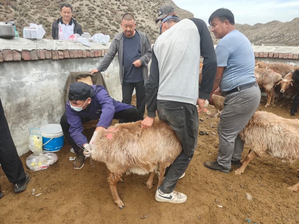 秋日的哈尔托热村阳光和煦,羊圈里一派繁忙景象。技术人员手持器械熟练地为绵羊进行埋栓、消炎护理和身份标记,一只只温顺的哈萨克羊在工作人员引导下有序接受标准化操作——这是茫丁乡推进绵羊品种改良工作的生动现场。