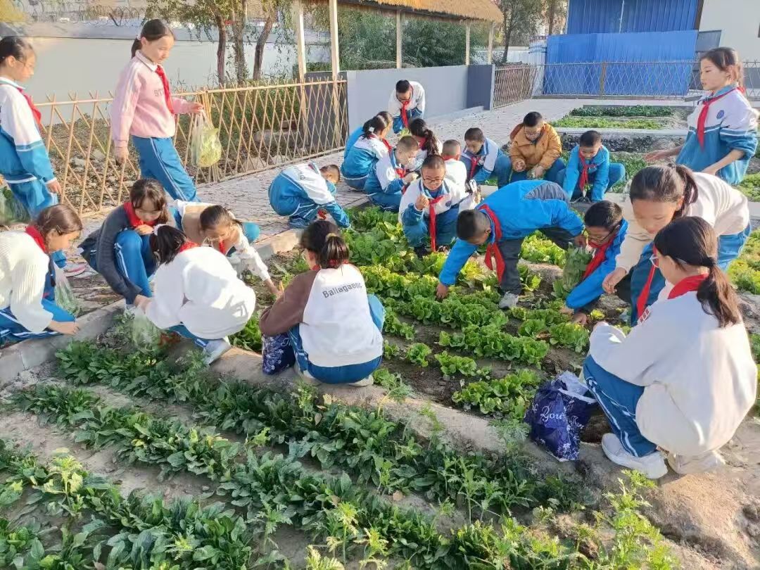 在精河县第一小学的种植园里,生命与教育的奇迹正在悄然发生。曾经由学生们亲手播下的种子,如今已破土成苗,化为一畦畦碧绿的菠菜、饱满的白菜。502班的同学们在班主任杨帆的带领下,卷起衣袖,弯腰收割,脸上洋溢着兴奋与满足的笑容。