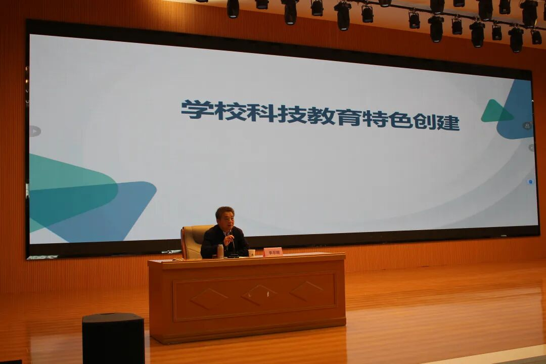 在专题报告环节,县第四中学党总支书记孙建峰以《以科技为翼,让每个生命幸福成长》为题,系统阐释了学校以科技教育推动五育融合的实践体系。工作室成员罗雪梅老师进一步解读了“基础+拓展+探究”三级科技课程结构,为不同层次学生提供适合发展的教育路径。