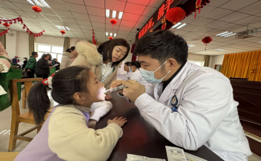 在口腔科义诊区,同样是热闹非凡。张医生正在为一位小朋友检查牙齿,因为爱吃甜食,有几颗牙齿已经出现了龋齿。张医生温柔地对她说:“小朋友,以后可不能再吃太多糖啦,而且每天都要认真刷牙哦。你看,这些牙齿生病了,要是不治疗的话,以后会更疼的。”小朋友似懂非懂地点点头。张医生针对居民们提出的关于龋齿治疗、正畸、牙周炎等问题一一进行解答,并给出专业的建议。他还特别强调了定期口腔检查的重要性:“口腔问题就像隐藏在身体里的小炸弹,平时不容易被发现,只有定期检查才能早发现、早治疗,才能避免病情加重。”