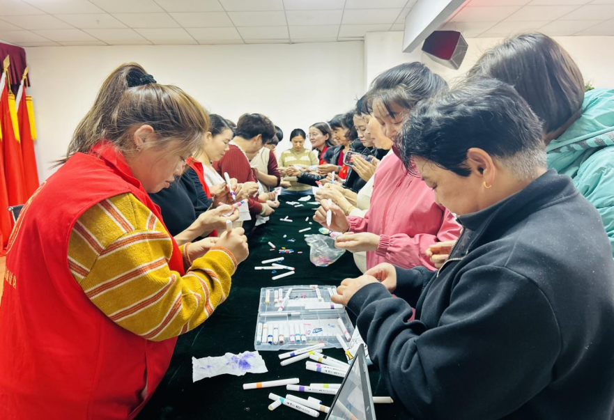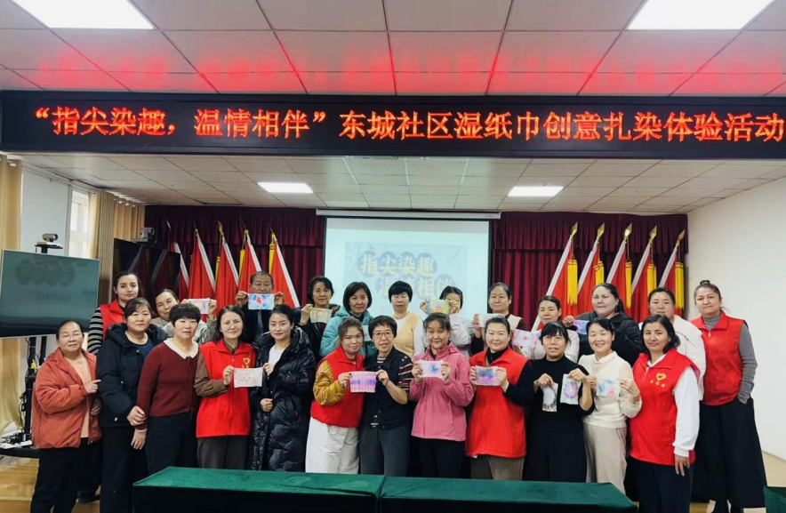 为丰富居民精神文化生活,传承非遗技艺魅力,促进邻里互动交流,进一步铸牢中华民族共同体意识,11月19日下午,精河镇东城社区二楼活动室内暖意融融、笑语不断,“指尖染趣,温情相伴——湿纸巾创意扎染体验”活动在这里温情开展,吸引了辖区各族居民踊跃参与,共同沉浸于一场传统艺术与社区温情交织的文化盛宴。