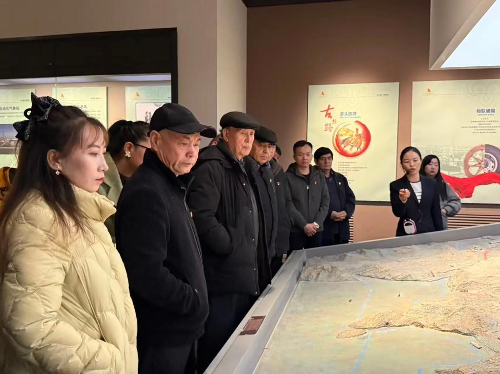 当日上午,全体党员佩戴党员徽章、手持国旗,集结出发。途中,红色歌曲传唱与口岸建设纪实短片观看同步进行,提前营造了浓厚的爱国研学氛围。抵达阿拉山口市后,在专业讲解员的引领下,党员们有序参观,了解了阿拉山口从“风口戈壁”到“丝路枢纽”的发展历程,党员们沉浸式感受“党建引领下的国门担当”。