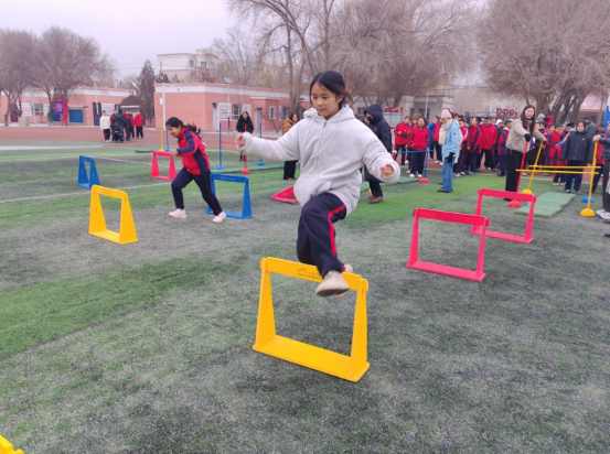 冬季锻炼被赋予红色内核。八家户农场小学将操场变为“雪山草地”,低年级“冰雪爬行”、中年级“强渡大渡河”搭浮桥、高年级翻越“雪山”平衡垫,让长征精神在汗水中可感可及。县第三中学、第四中学冬季长跑如条条彩练,呐喊与脚步合奏“青春远征”。八家户农场幼儿园“小小骑手勇争先”平衡车闯关,让萌娃在挑战中完成属于自己的“勇气长征”。