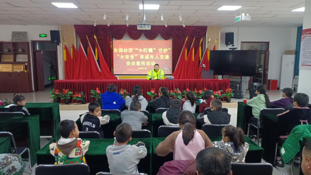 为将交通安全的种子播撒进孩子心中,用“小叮嘱”守护他们的“大安全”,11月29日,东郊社区一场别开生面的未成年人交通安全宣传活动吸引了众多学生与家长。精河县公安局交通管理大队民警熊佳乐、妥世龙受邀走进社区,为辖区学生带来了一堂既严肃又生动的“生命安全课”。