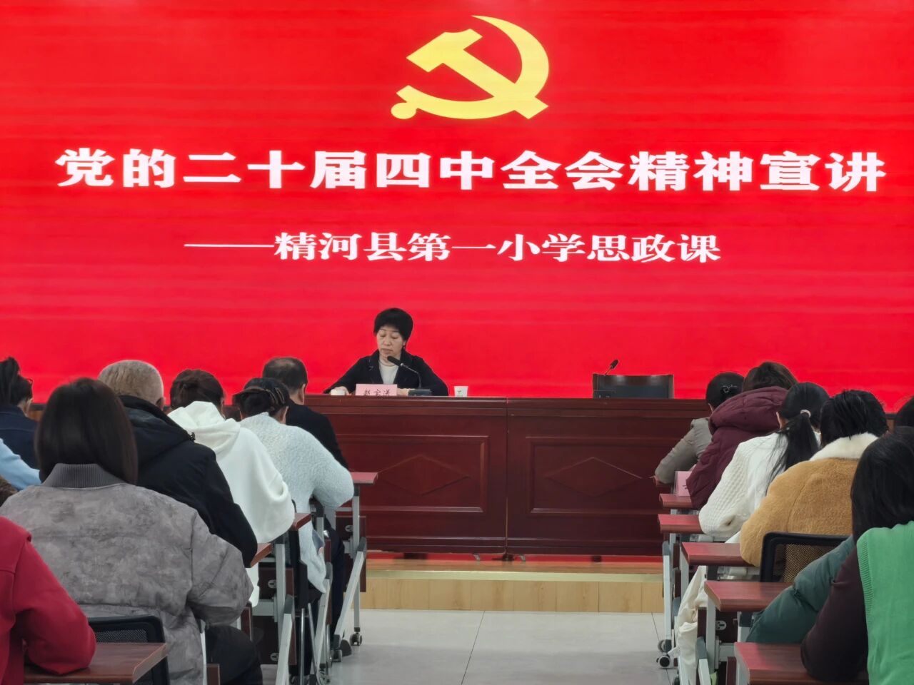 12月12日,精河县委常委、组织部部长、党校校长、县直机关工委书记赵宝送深入县第一小学,开展党的二十届四中全会精神专题宣讲活动,县委教育工委副书记、教育局党组书记、副局长杜萍主持会议。县直学校党组织书记、校(园)长,教师代表共100余人参会。