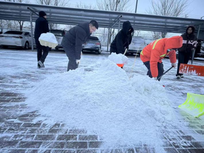 经过数小时的协同奋战,办公楼前后空地的积雪冰块被彻底清除干净,成功开辟出多条安全畅通的通行通道,全面消除了降雪带来的安全隐患,为物流园区干部职工日常办公、往来办事人员便捷出行筑牢了安全屏障。此次扫雪除冰行动,不仅展现了物流园区干部职工团结协作、务实担当的优良作风,更以实际行动践行了“以人为本、服务为先”的工作理念,为物流园区持续营造安全、有序、便捷的工作环境奠定了坚实基础。