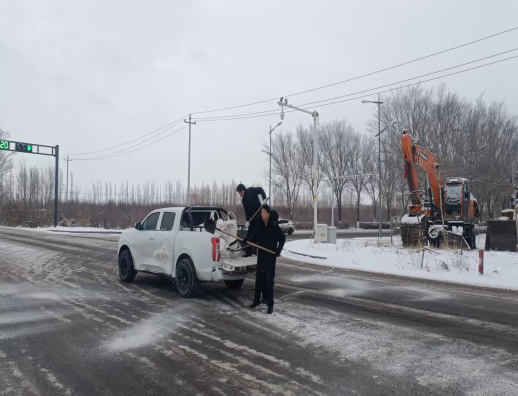 此次除雪作业聚焦群众出行关键通道,北外环作为县域重要货物运输路段,南外环承担着大型车辆分流功能,托托辅道更是连接城乡的交通纽带,三条路段的畅通对县域交通网络高效运转至关重要。作业现场,刘永立书记率先垂范,带领干部职工顶风冒雪、分工协作,严格遵循“机械为主、人工为辅、全域覆盖”的作业原则,形成“扫雪车开路清障、保障车物资补给、人工清理盲区”的高效作业模式。扫雪车轰鸣作业,滚刷飞速旋转清除主干道积雪;党员干部职工手持铁锹、推雪板,对道路两侧、路口转角等机械作业盲区进行细致清理,确保积雪无残留、路面无暗冰,同时将积雪规范堆放至不影响通行的区域,实现文明除雪、高效除雪。