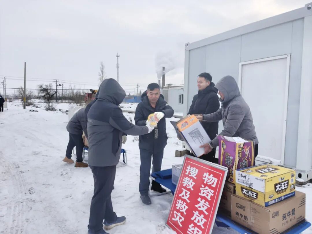 搜救及救灾物资发放组顶着寒风冲入模拟受灾区域,利用撬棍、绳索等工具开展废墟搜救,确保无人员遗漏。在临时安置点,工作人员快速搭建保温帐篷,为转移群众发放防寒棉被、热饮、方便食品等物资,严格落实“五有”保障要求,抵御严寒侵袭。医疗救护组在积雪覆盖的场地搭建临时救护点,对“受伤群众”实施止血、包扎、固定等急救措施,用保温担架转运至公共卫生服务专车,全程做好低温环境下的保暖防护。