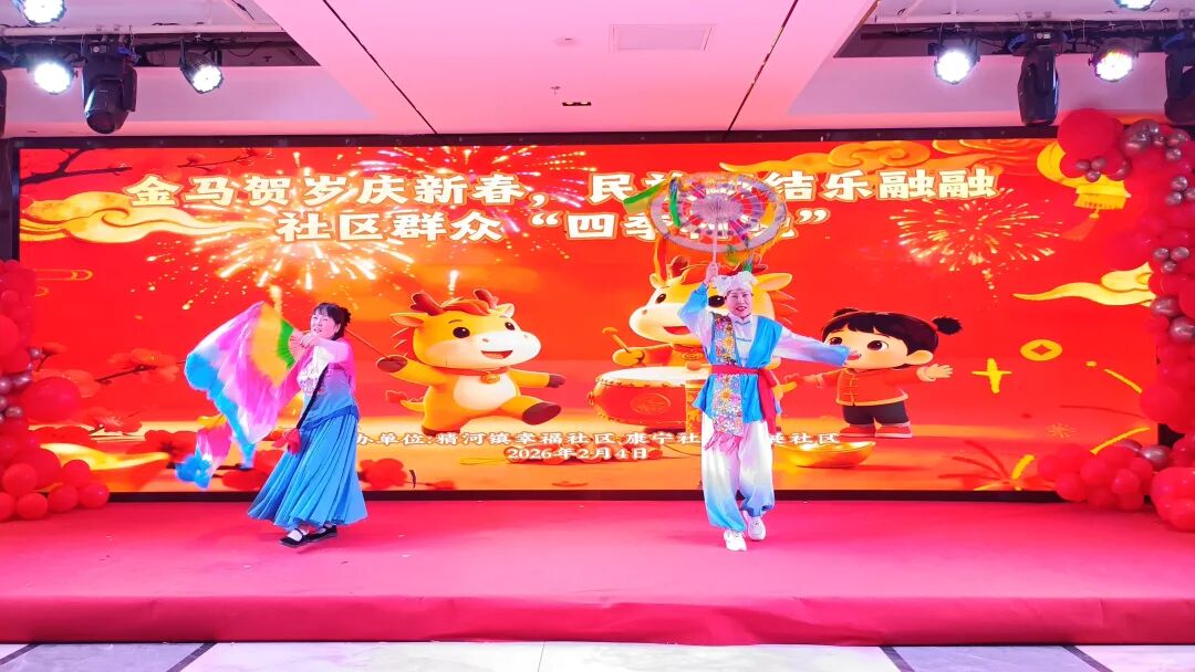 新春临近,年味愈浓。为营造喜庆祥和的节日氛围,增进邻里情谊,铸牢中华民族共同体意识,2月4日,精河镇康宁社区、幸福社区、云展社区联合举办“金马贺岁庆新春,民族团结乐融融”群众村晚活动。200余名各族居民欢聚一堂,以歌为媒、以舞传情,共赴一场充满烟火气与民族情的新春盛宴。