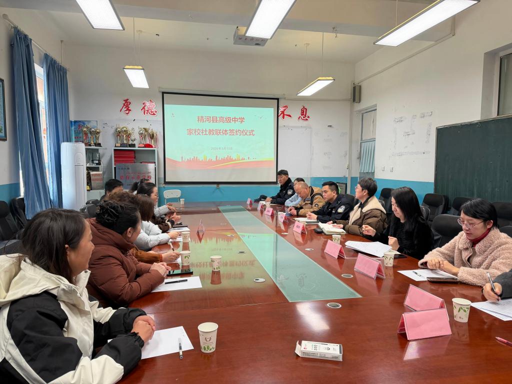 为进一步凝聚家庭、学校、社会多方育人合力,构建全方位、立体化、协同化的育人体系,推动教育事业高质量发展,3月13日,精河县高级中学举行家校社教联体签约仪式。教育、公安、医院、社区、家长等代表齐聚一堂,共商共育大计,共绘育人蓝图,仪式全程有序开展圆满落幕。