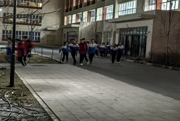 22时,夜间实战疏散演练正式启动,模拟地震发生在学生晚自习结束、宿舍就寝时段。警报响起后,学生迅速紧急避震,主震减弱后,在教师及生活指导老师引导下,分班级、分宿舍有序撤离,演练同步模拟照明中断、学生恐慌等突发情况,教师及时开展疏导安抚。全体参演师生从警报响起到安全集结完毕,仅用时4分12秒,撤离过程规范有序,圆满达成演练目标。