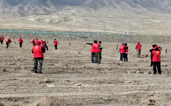 为尽快推进“千亩海棠”林乡村旅游建设项目,阿合其农场场党委坚持以党建为引领,充分发挥场、队(社区)党组织的领导和党员模范带头作用,场党委指定班子成员专人负责项目统筹,村队(社区)第一书记、党支部书记具体负责项目协调落实和推进。4月10日,在场党委的统一部署下,场部机关全体干部及7个村、两个社区、1牧业队的“两委”干部、党员等200余人,在牧业队五台辖区千亩海棠林开展植树造林活动,参加植树活动的党员、干部们身穿着“志愿者服务”红马甲,在技术人员的指导下两人一组,相互配合,挥锄动锹,搬苗放苗,挖坑栽树等各环节有条不紊,将一棵棵香妃海棠树苗种植于希望的田野上,植树现场一片热火朝天的劳动景象。经过一天的辛勤劳动,大家的脸庞上一丝看不到疲惫,人人都为五台古驿站的生态建设做出自己的努力而高兴。