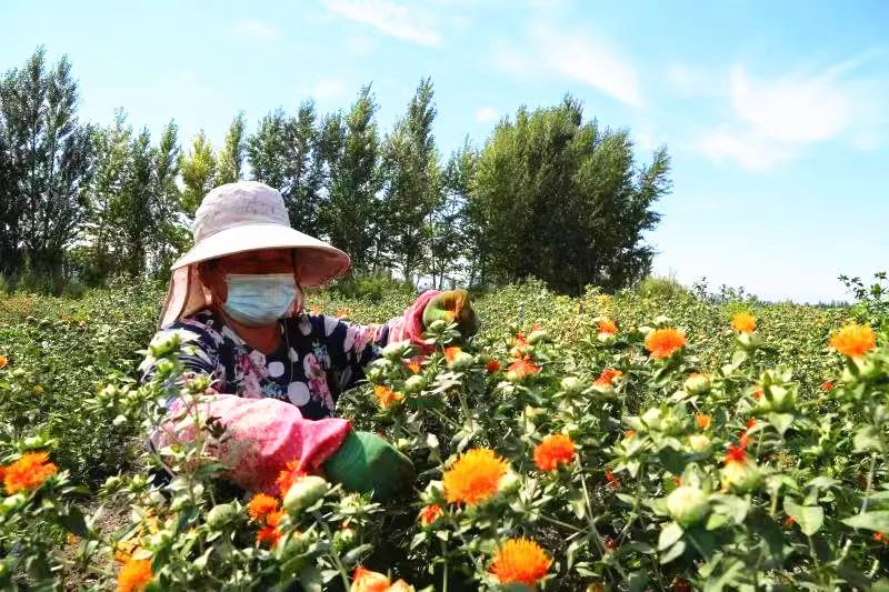 随着红花市场需求量增加,精河县茫丁乡五棵树村抓住机遇,发展红花种植,眼下正值盛花期的红花竞相开放、长势喜人,成为当地增收致富的新路径。