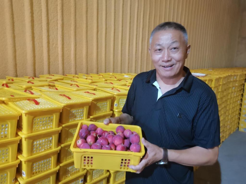 黄银山介绍说,新疆的吉星香妃海棠果大部分都销往广东、浙江等地,受疫情影响目前这些地方的销售渠道不太畅通。多亏托托新村“两委”和驻村工作队黄银山积极发动工作人员及时联系采摘顾客和收购商,让今年的果子卖出好价格。
