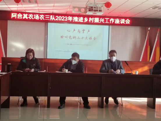 为深入贯彻落实党的二十大精神,更好地发挥党员先锋模范作用,动员广大党员集思广益,为乡村振兴工作出谋划策,1月12日,阿合其农场农业三队召开2023年推进乡村振兴工作座谈会。会议由工作队第一书记艾海提主持,农场包村领导、各合作社负责人、劳务经纪人、养殖户、种植户代表、退休老干部、村民代表和部分党员共45人参加。座谈会上,第一书记艾海提通报了2022年乡村振兴工作开展情况,宣读《阿合其农场农三队2023年乡村振兴工作计划》及2023年农三队助推乡村振兴计划实施的9项重点工作,征求广大党员意见和建议。参会党员围绕如何推动农三队乡村振兴工作展开热烈讨论,结合实际,畅所欲言、各抒己见,提出了许多宝贵的意见和建议。