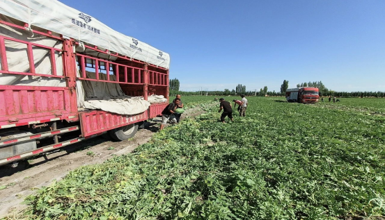阿合其农场光照充足、水源丰沛、土质肥沃,种出来的“金成五号康乐七号”西瓜个大皮薄、水分充足、含糖量高,吃起来清甜可口,一经上市就获得了消费者认可。“西瓜在上市前就做好了销售方案,还没上市就接到了部分订单。西瓜刚上市,就有包括精河本地和周边地区,还有广东、贵州、四川、南京等的收购商到园里进行收购,并且当地消费者对我们的西瓜品质也是非常认可,完全不用为销售发愁。”合作社负责人刘利平侃侃而谈。西瓜热销市场,让合作社看到了发展的希望,发展信心和底气更足了,合作社计划在明年将西瓜种植面积扩大到2000亩,同时加快对产品认证,进一步提升品牌知名度。乡村要振兴,产业是关键。阿合其农场副场长于雷峰介绍说,阿合其农场农一队以“党支部+合作社+农户”的经营模式,将闲置土地进行集中流转建成特色产业示范基地,陆续引进多家种植专业合作社进场经营,带动村级集体经济发展壮大、辐射带动群众就近就业稳定增收,不断拓宽当地群众“甜蜜共富路”,为乡村振兴发展蓄势赋能。