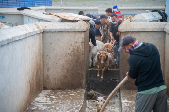 秋季是开展动物防疫工作的关键时期,为确保全场畜牧业健康发展,切实保障广大养殖户的利益,9月15日,在阿合其农场牧业队五台社区牲畜药浴现场,牧民们在阿合其兽医站和村级防疫员的指导下,正在进行赶羊、圈羊、入池、浸洗等一系列流程的操作。技术人员通过手持工具压扶、控制羊前进的速度,在防止呛水的同时,将羊的头部压入药浴中,使羊全身浸透,保证药浴覆盖面达到100%。阿合其农场牧业队五台社区党支部副书记徐金龙说:“及时对羊进行药浴,不仅能提高羊的免疫力,还能消除羊体内的寄生虫,促进生长发育,能很好地帮助牧民增产增收。”阿合其农场牧业队五台社区牧民喀斯木·扎克乌有800多只羊,每年的“药浴”工作他都非常重视,当天一早就赶着羊群来到药浴点。喀斯木·扎克乌说:“感谢场部修了(洗)羊池子,我的800多只羊都进行了药浴,药浴后羊基本不生病,秋天也能卖个好价格。”