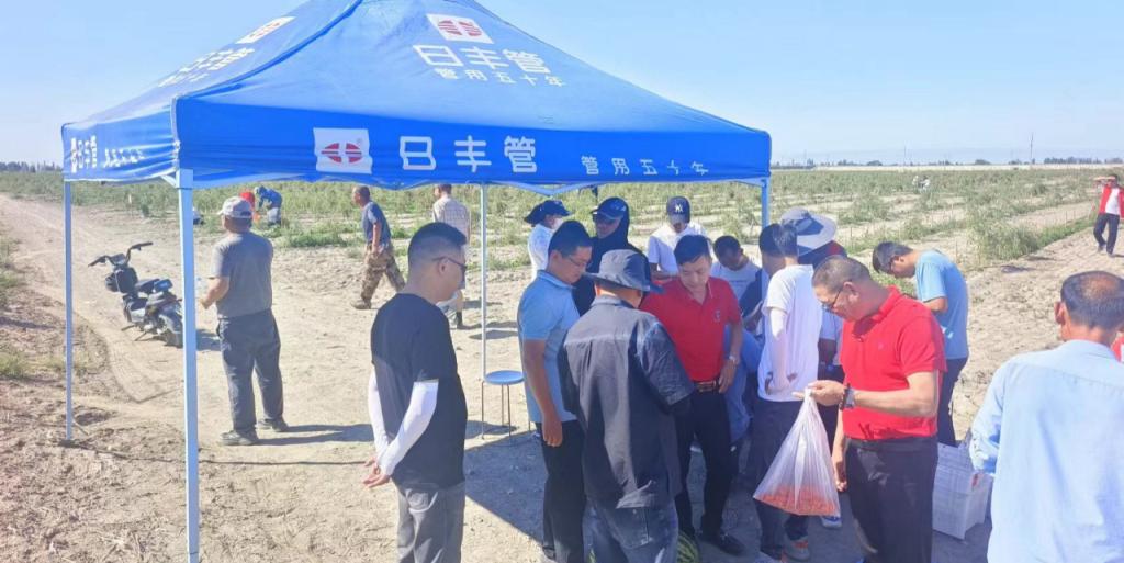 盛夏时节,北地东村枸杞种植基地示范田的枸杞陆续成熟,颗颗饱满、粒粒透红的枸杞挂满枝头,采摘工人熟练地将一颗颗枸杞摘入桶内,一派忙碌的丰收景象。