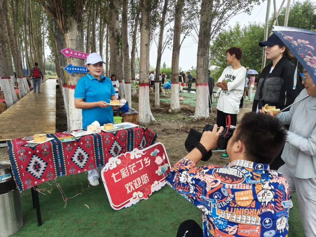 茫丁乡积极探索绿色循环发展的新路径,用创意点亮乡村文化,搭建了简易休憩长廊和独具一格的“网红”稻草沙发和具有民族特色的哈萨克毡房,为参加活动的群众提供舒适化的室外休憩区;同时将传统馕与现代化咖啡文化相结合制作了“馕咖啡”,吸引了在场群众纷纷品尝,赞不绝口;设置了农特产品展销区,将具有本土特色的枸杞鲜果、枸杞啤酒、稻香米、鲜食玉米、瓜子等各式各样的土特产品进行展示并销售,推动产业发展,助力乡村振兴。