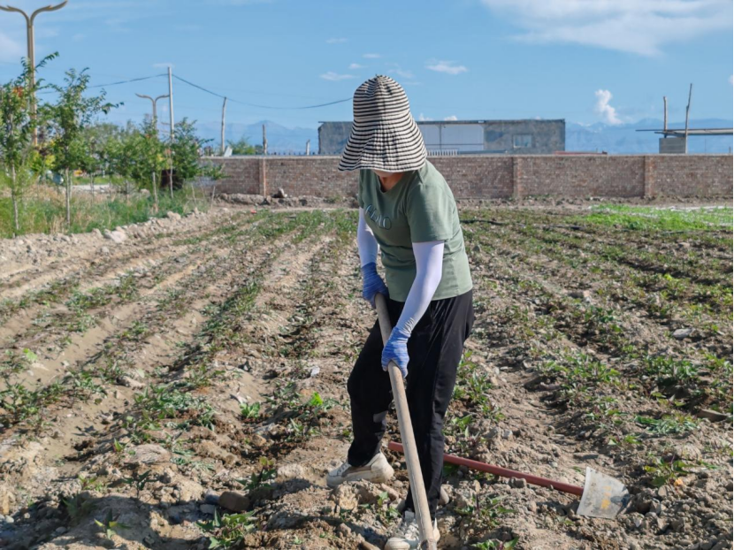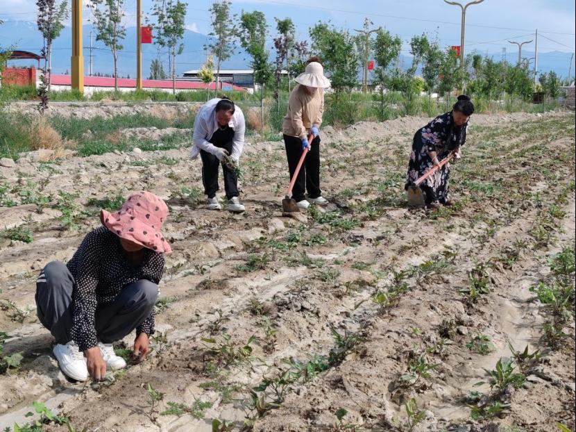 烈日当空,红薯地里热浪滚滚,仿佛连空气都在燃烧。然而,皇宫北村的“六位一体”干部、公岗人员和联户代表们却毫无畏惧,手持锄头,穿梭在红薯苗间,仔细清除杂草、松土保墒。汗水湿透了他们的衣衫,皮肤被晒得通红,但没有人抱怨,没有人退缩。“草不除干净,红薯长不好,再热也要坚持!”一位干部一边挥动锄头,一边对身边的村民说。他的声音虽沙哑,却充满了力量,鼓舞着现场每一个人。村民们也深受感染,纷纷加入这场助农行动。红薯地里,锄头与土地的碰撞声、人们的交谈声交织在一起,奏响了一曲动人的助农乐章。经过连续两天的奋战,南戈壁小组红薯地的除草松地任务圆满完成。看着眼前这片焕然一新的红薯地,村党支部书记感慨地说:“这片红薯地,不仅是村民们的希望,更是我们村乡村振兴的基石。今天,我们用汗水守护了它,相信它一定会在秋天回报我们丰收的喜悦。”这场助农活动不仅为红薯苗创造了良好的生长条件,更凝聚了村庄的力量,彰显了党员干部的责任担当。