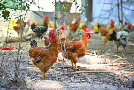 农四队党支部创新推出“林+鸡”立体农业模式,让鸡群在天然林地中自由采食昆虫、草籽,饮用清冽地下水,既营造了“以林养鸡、以鸡促林”的良性生态循环,又通过“鸡粪肥林—林荫护鸡”的闭环,保障了生态鸡的品质。