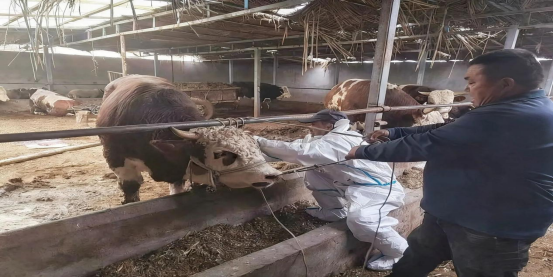 精河县畜牧发展中心技术人员李刚说“秋季是动物疫病防控的关键期,畜禽免疫抗体检测是评估免疫效果、排查疫病风险的重要手段。这次我们与自治州检测组、农场兽医站联动入户,一方面是为了获取真实准确的检测样本,为后续免疫效果评估、疫病风险研判提供科学依据;另一方面也是想通过‘现场教学’,提升基层兽医人员的专业能力,让防疫服务能更精准地送到养殖户身边,从源头守护农场畜牧业安全。”