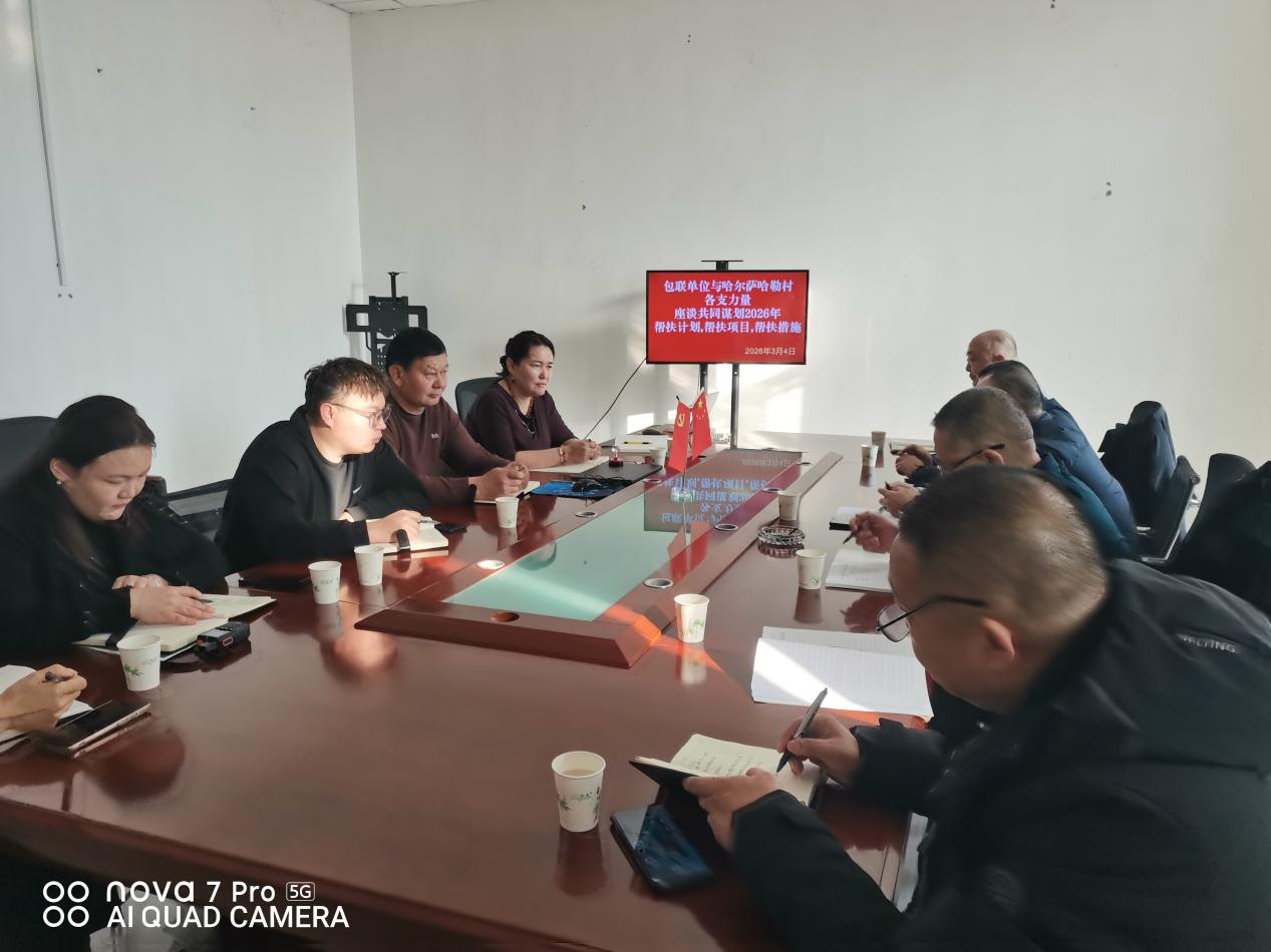 2026年3月4日,精河县农业技术推广中心领导带队赴包联村队大河沿子镇哈尔萨哈勒村召开“访惠聚”包联帮扶联席座谈会,县农技中心主任、各站所长、历任驻村第一书记和村“两委”参会。与会人员就粮食安全、乡村振兴项目、畜牧业升级等工作进行座谈交流。