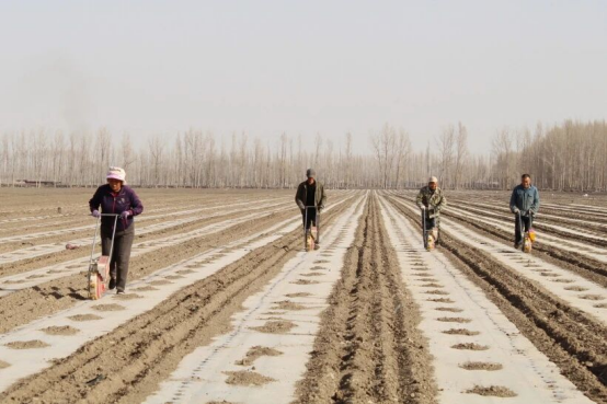 春风拂沃野,春耕正当时。3月25日,走进精河县阿合其农场农一队的田间地头,覆膜后的土地平整有序,一派繁忙春耕景象。种植户李贵忠正组织4名工人,依托轻便式手推播种机,全力推进60亩鲜食玉米春播作业。“人工+小型农机”的精耕模式,让每一粒种子都精准入土,在春日沃土中播撒下丰产增收的新希望。