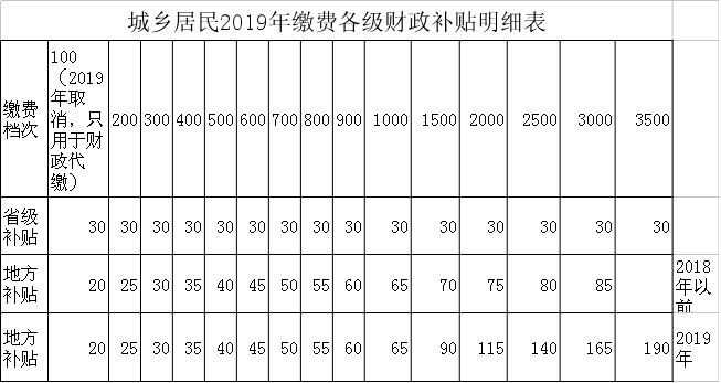 缴费标准目前设为每年100元(2019年取消)、200元、300元、400元、500元、600元、700元、800元、900元、1000元、1500元、2000元、2500元、3000元,3500元14个档次。参保人可根据本人及家庭经济状况,按年度自主选择,多缴多得。