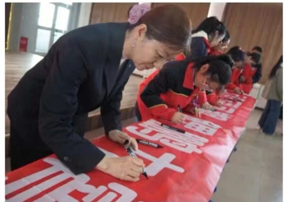 全体师生庄严宣誓,立下雄心壮志,向着“百日冲刺战中考,一鼓作气创辉煌”的目标立下铮铮誓言。雪莲花支教团队的孟昭亮老师和叶樊老师也为学子们助力,激情献唱。