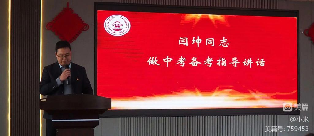 大河沿子镇第一中学党总支书记闫坤同志为九年级同学们进行总动员,九年磨一剑,六月试锋芒。他激励学生们树立远大目标,希望同学们在这最后一百天,坚持自己的恒心,保持自己的梦想,努力朝着一个方向奋进,不和别人比天赋,要和别人比努力和汗水,这样才能在满载希望的六月,在大镇中学这块神圣的土地上创造属于自己的辉煌!