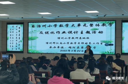 为深入理解单元整合与拓展的概念,优化作业设计,赋能小学数学教师专业成长,4月23日,博州小学教研基地校组织自治州小学数学骨干教师、学科带头人、小学数学教研员等150余人参加了在精河县第二中学举办的“小学数学大单元整体教学及优化作业设计”研讨活动。活动由邓江南小学数学名师培养工作室牵头,共分课堂展示、专家讲座、主题研讨、交流互动四个环节。