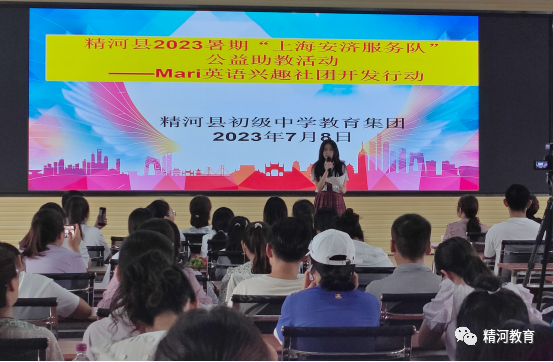 7月8日,精河县初级中学展示校园文化及“安济教育服务队”带来Mari英语兴趣社团开发行动。县初级中学十名学生英文朗诵《My Hobby》,感知英语诗歌的音韵节奏;学生盛装表演的英语话剧《The Sound of Music》,让参训者眼前一亮,感受到学生的自信心及英语学科与其他学科的相融合,展现学校课堂改革成果。