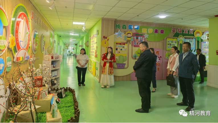 视察组一行先后实地察看了大河沿子镇第一幼儿园、精河县第一幼儿园。每到一所幼儿园,视察组成员通过实地察看、听取汇报、交流座谈等形式,详细了解了幼儿园在课程设置、管理规划、师资配备、保育管理、教师待遇和环境建设等方面的工作情况,充分肯定了精河县学前教育普及普惠发展取得的成绩。听着幼儿园里不同民族的小朋友现场解说,看着孩子们自由快乐地投入到各区域中游戏活动,视察组一行不禁感叹:“幼儿园就应该多组织孩子们在户外活动”。