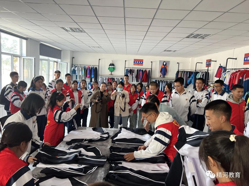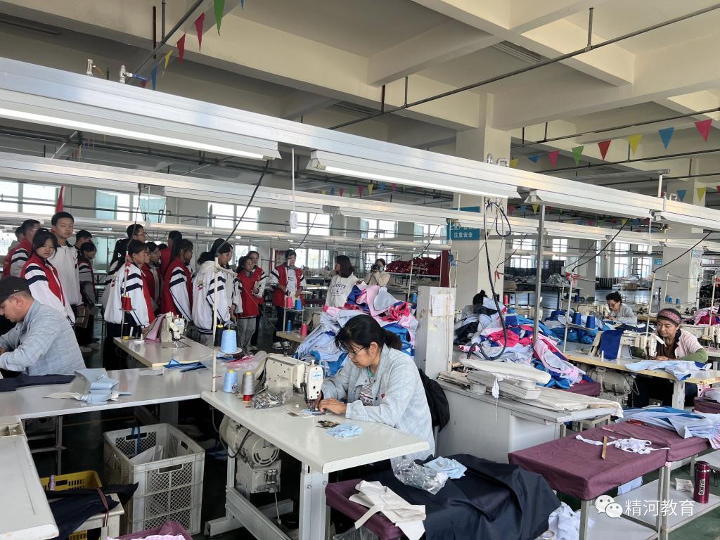 在精河县维郎工业有限责任公司,同学们通过实地观摩、实践参与,讨论交流等形式,深入了解了企业发展的辉煌历程和经营方针,满满的荣誉墙诉说着在党的领导下,一代又一代各族群众在盛产棉花的精河热土上,砥砺奋斗,促进精河经济发展的红色征程。王红俊副总的精彩解说,吸引了学子们驻足凝神聆听;体验互动环节,学子们比赛封装校服,最后由王总点评,更使学生懂得掌握一门专业技术的不易和重要性。