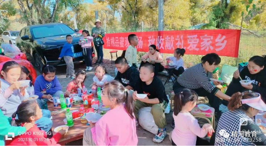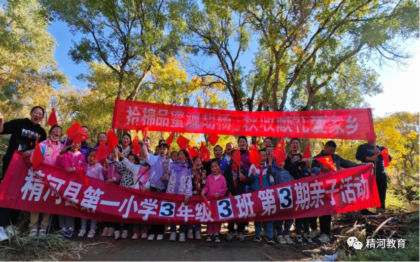 三年级3班的师生及家长,挥舞着手中的小红旗,来到了精河县五棵树胡杨林。拾棉花、品蜂蜜、赏胡杨,秋收献礼爱家乡,感受到了农务之辛劳,体验了丰收的乐趣,也欣赏到了秋天的美景!
