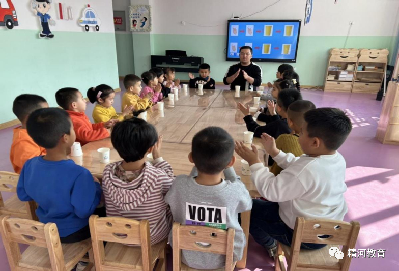 各班教师精心准备,结合本班幼儿年龄特点,教学活动以游戏贯穿,以故事、律动、动画视频等教学手段导入,从而激发幼儿参与科学活动的兴趣。小班组教师主要以科学游戏为主,马吟老师的《大声和小声》,孟佳老师的《会“唱歌”的罐子》,贾娜尔老师的《送玩具回家》等教学活动,让幼儿在游戏中感知声音的大小,在操作中体验不同罐子发出的声音,在玩玩具中懂得要收放回原处等教育意义。