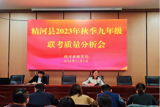 为全面提高中考备考的针对性和有效性,优化备考策略,力争在2024年中考中取得新突破。11月1日下午,精河县2023年秋季九年级联考质量分析会在县教育局召开。精河县党委教育工委副书记、教育局党组书记、副局长杜萍参加会议。会议由教研中心主任邓慧婕主持。各初中学校书记、校长、教务主任、教研组长、年级组长,县教研中心全体成员共计40人参加会议。
