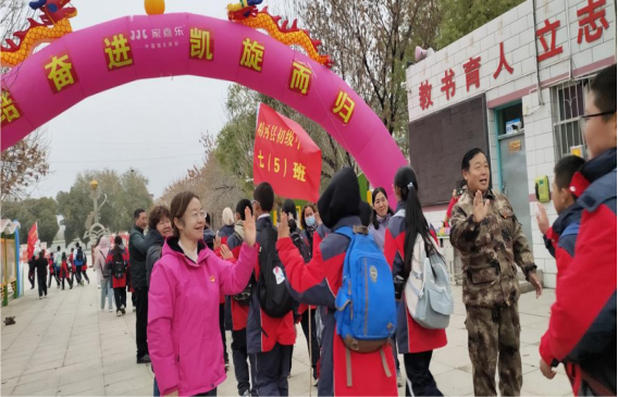 30公里的徒步纵然不算轻松,耐力与体能成了考验师生的一大难关,或是体力透支,或是四肢酸疼,这一挑战正待同学们以毅力与坚持相迎。“返回途中,同学们克服困难,互相帮助。男生给女生背包,或者互相手拉手一起前行。此时此刻,不论是精疲力竭时来自队友的一次帮助,还是来自同行教师们的一声鼓励,衬着少年人的气魄与胆识,通通在汗水中化作了前行的动力,点燃他们心中那份强大的信念,支撑着向前走。长途归来,当踏入凯旋门的那一刻,所有的疲惫都化成为成功的喜悦。”八年级4班班主任魏巍感言。