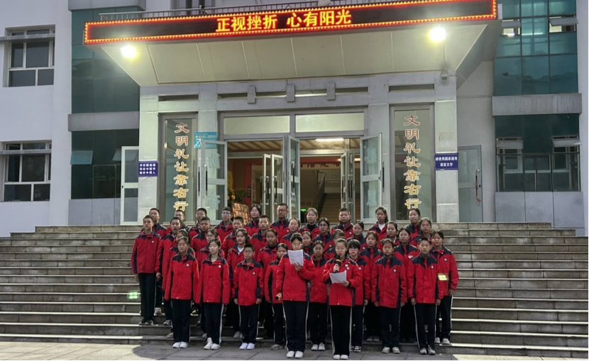 11月27日,学校开展了“挫折教育”主题升旗仪式和主题班会活动。升旗仪式上,八年级(3)班全体同学带来了国旗献词《正视挫折 心有阳光》。以史铁生、王安石的生平经历,提醒我们:在经历挫折与失败后,不能轻言放弃,要与挫折斗争到底,以积极阳光的心态面对挫折,风雨之后总能看见彩虹!