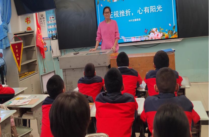 主题班会上,各班学生在班会活动中体验挫折对于人生的积极意义,学习在生活中积极乐观地面对挫折。认识到:人生不是一帆风顺的,要正视挫折,勇敢面对,放平心态,坚强乐观,生活充满了阳光,每一天都是新的开始。