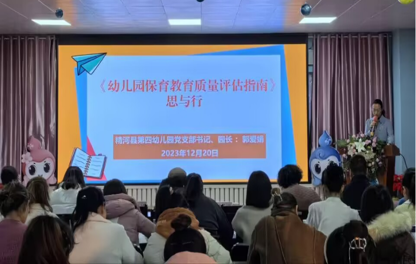 活动中,县第四幼儿园教育集团党总支书记、名园长工作室主持人郭爱娟带来专题讲座《关于〈幼儿园保育教育质量评估指南〉的思与行》,从“是什么、为什么、学什么、做什么、怎么做”等5个方面做了细致地解读。