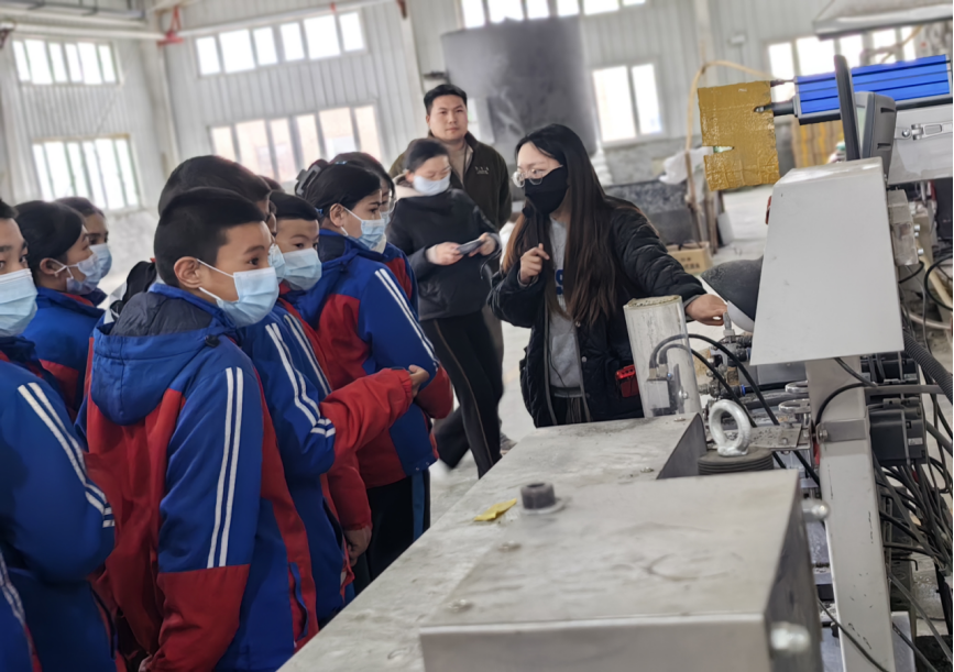 在讲解员的介绍中,同学们知道了塑料薄膜从残膜回收到再利用,滴灌带从原料到成品的生产流程,此次观摩使同学们对农用生产物资有了详细全面的了解与认知,更明白了科技兴农、科技助农的重要意义。