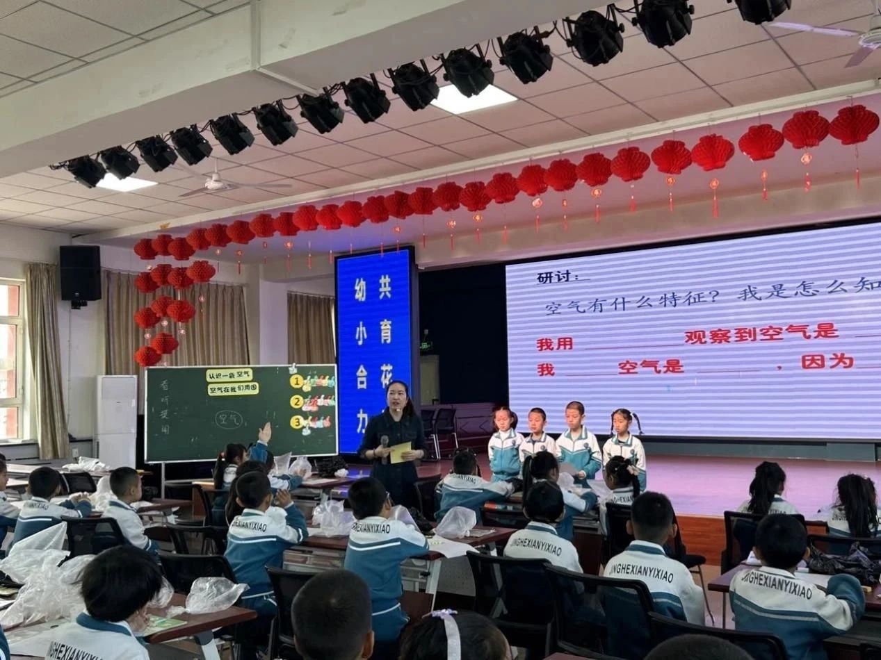 活动在精河县第一幼儿园戎芳老师的科学活动《有趣的影子》拉开序幕,课堂上,通过创设多种学生体验活动,激发学生探究影子的兴趣,课堂氛围活跃。来自县第一小学的侯庆玲老师带来一年级科学课《认识一袋空气》,通过小组合作、自主探究活动,让学生在活动交流中体验在我们身边空气无处不在。