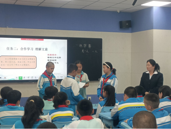 课堂中,老师们紧紧围绕单元语文要素和教学重难点,创设有效的课堂教学情境,设置有梯度的学习活动,引导学生主动参与,理解感悟,探究发现,在实践中学,在合作中学。老师们依据教学任务,科学地设计了评价量表,让学生在自评、互评中有效落实了语言文字的运用和鉴赏,实现了“教学评”一体化。赛后,各学校老师们进行评课讨论,并进行汇报。