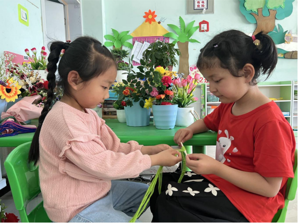 “育”见编织,“编”玩“编”乐。编织区域设立以来,孩子们的积极性普遍较高,纷纷投入到编织区,自发研究毛线玩法,从翻绳到缠绕,又到编织作品,沉浸在编织艺术体验活动中,五颜六色的毛线在孩子们手中翻来翻去,仿佛变成了魔法线,编织出越来越精美的作品。