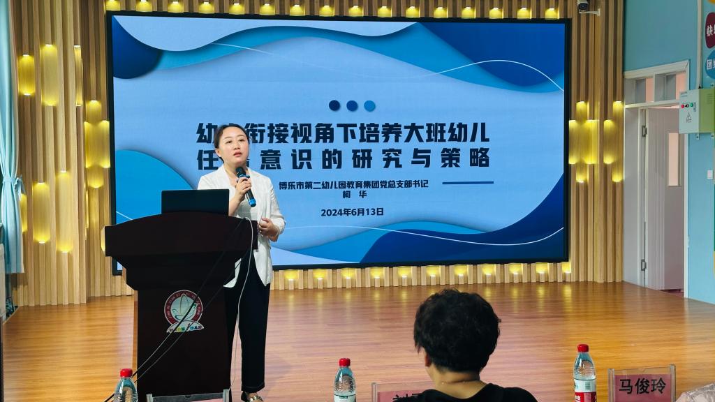 精河县第一幼儿园、精河县第一小学、第四幼儿园以及博乐市第二幼儿园分别就幼小衔接工作进行了精彩的分享。他们从不同的角度阐述了幼小衔接的意义和方法,强调了家庭、幼儿园和小学之间的紧密合作对于孩子成长的重要性。精河县第一幼儿园播放了“我的幼儿园生活”学前教育宣传月宣传片及“童心大视界”成果展示,为全州幼小衔接工作提供了可借鉴的经验和做法。精河县第一幼儿园的教师团队展示了“探索幼儿园户外自主游戏活动中教师的观察和支持策略”,通过激烈的研讨,给在坐的观摩教师传递了很多新经验、新做法,为今后的自主游戏指明了方向。