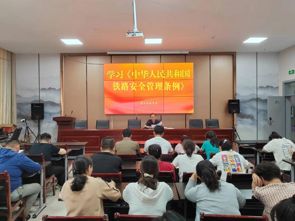 校警携手共建,强化专业宣传教育。邀请铁路派出所、接触网工区工作人员、县铁路护路办等部门进校宣传铁路护路安全知识,尤其是针对铁路沿线的学校,通过铁路安全专题讲座、播放宣传短视频、有奖互动问答、发放宣传资料等方式,多角度、全方位向同学们宣传普及铁路法律法规和铁路安全相关知识,重点讲解了铁路沿线及铁路道口(涵洞)禁止的行为和注意事项,让学生了解到爱护铁路和维护铁路安全的重要意义。同时,对同学们提出了爱路护路的具体要求,引导同学们自觉遵守铁路法律法规和铁路安全相关规定,提高爱路护路意识,切实养成爱路护路的好习惯,做到不在铁路上行走玩耍、不攀爬铁路护栏、不损坏铁路设施等,倡导同学们从我做起、从现在做起,争当铁路安全的“宣传员”和“守护员”,争做一名爱路护路的“铁道小卫士”。