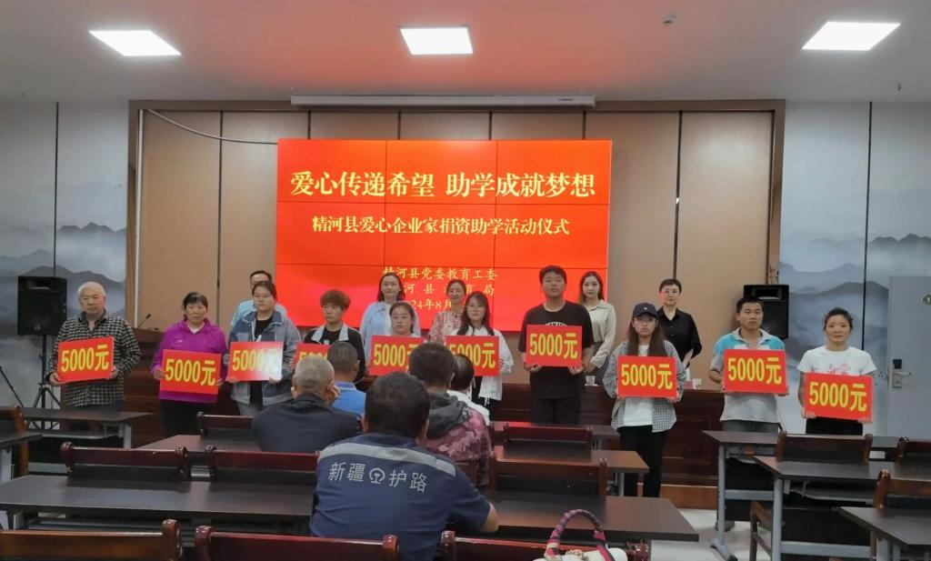 点点爱心点燃希望之光,片片真情托起明日朝阳。8月29日,精河县教育局开展“爱心传递希望 助学成就梦想”爱心企业家捐资助学活动,教育局领导班子成员、襄阳五中精河分校领导、爱心企业代表、受资助学生及家长参加资助仪式。
