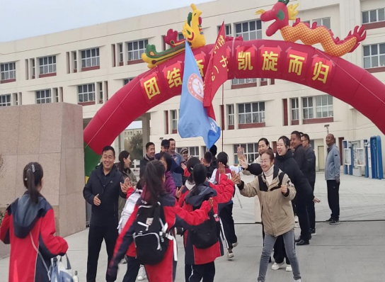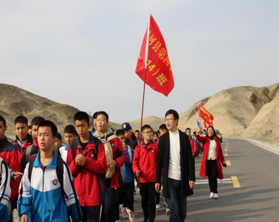 从学校到公铁物流园、县地震台、敖包东归广场,距离较远,耐力与体能成了徒步研学的一大难关——或是体力透支,或是四肢酸疼,这一考验同学们以毅力与坚持去克服。“返回途中,同学们克服困难,互相帮助。男生给女生背包,或者互相手拉手一起前行。此时此刻,长途归来,当踏入成功门的那一刻,所有的疲惫都化为成功的喜悦。”九年级8班班主任吾拉依木江·亚生说。